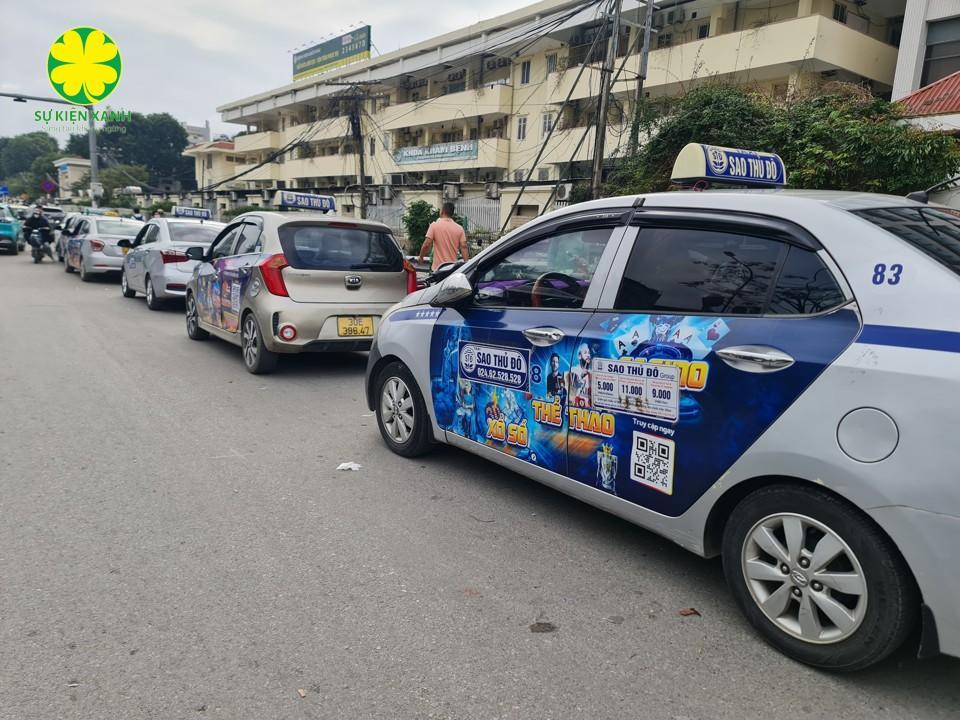 - Quảng cáo trên kính xe taxi: 300.000 – 700.000 đồng/xe/tháng